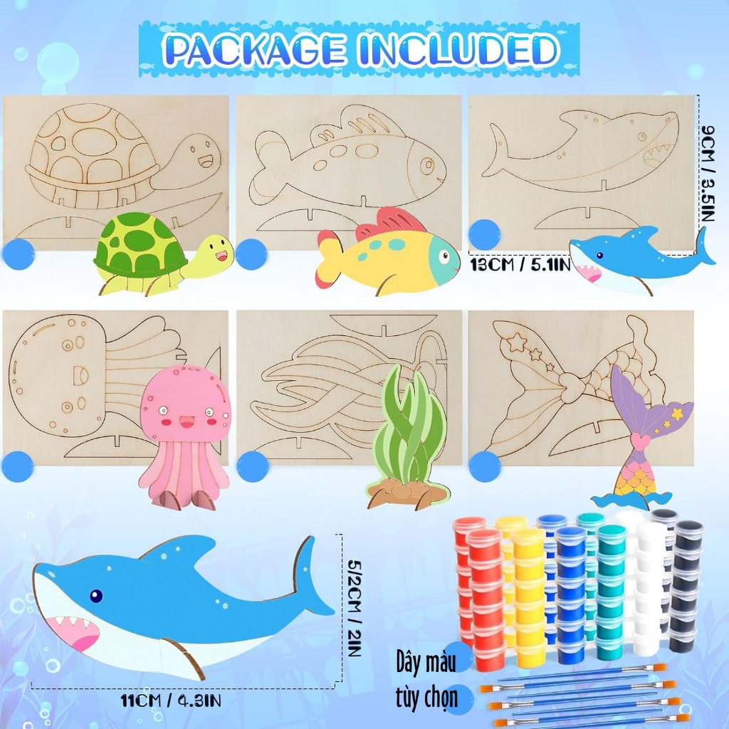 Mỗi hình đều được cắt bằng gỗ mịn đẹp (phù hợp với trẻ con và các loại màu vẽ thông thường từ bút dạ màu, bút sáp, màu nước,..)