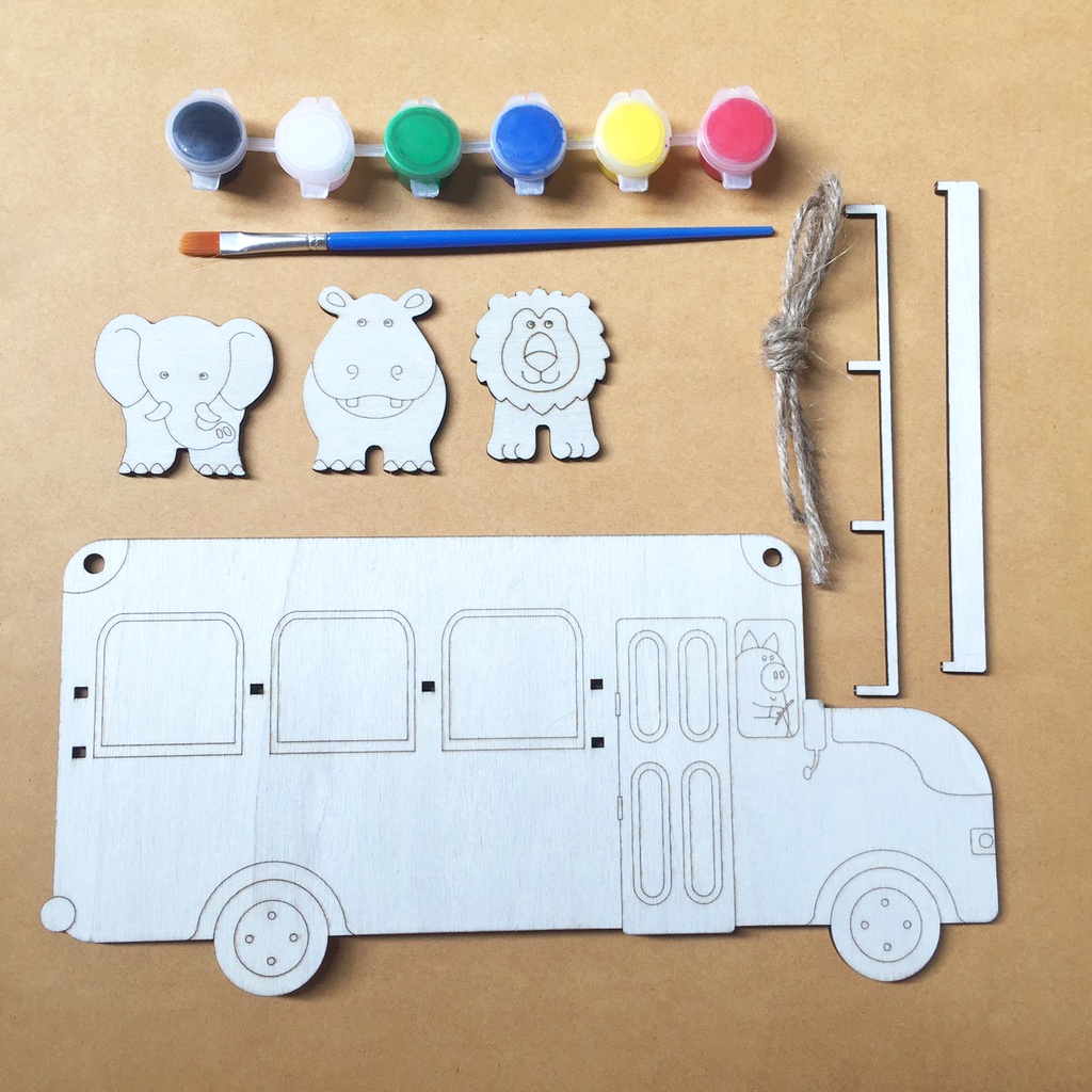 Set Tô Màu Gỗ tặng kèm dây treo chủ đề Động Vật và phương tiện giao thông