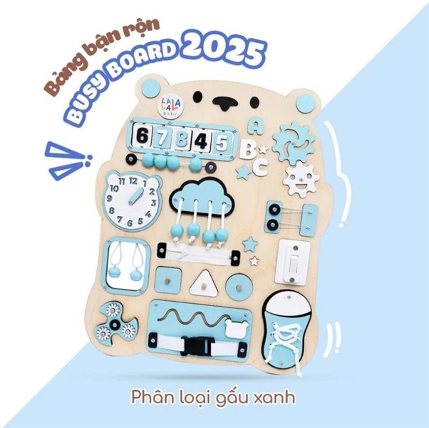 Bảng bận rộn, busy board là một bộ đồ chơi giáo dục sớm, giúp con rèn luyện, làm quen với các kỹ năng vận động, cảm nhận trong thời kỳ vàng từ 1-3 tuổi.