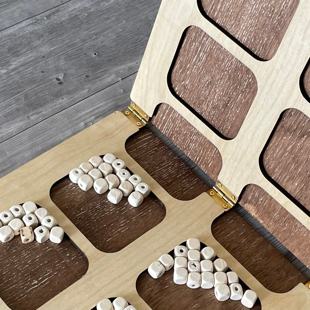 - Thiết kế gọn nhẹ, chắc chắn, các hạt bằng gỗ thông được mài tròn, mịn, đảm bảo an toàn khi chơi
