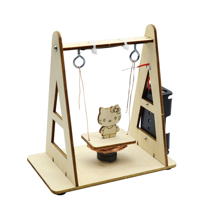 Khi đóng công tắc, mạch điện lưu thông, lực từ sinh ra trong cuộn dây và lực từ của nam châm đẩy nhau làm cuộn dây lệch về một phía. Sau khi xích đu được mở ra, móc và dây kim loại bị tách ra, ngắt mạch điện, lực từ bị mất ngay lập tức, và cuộn dây sẽ trượt xuống tự nhiên dưới tác dụng của trọng trường. Sau khi đu quay trở lại vị trí ban đầu, nó tiếp xúc với dây đồng mỏng sinh ra lực đẩy và lại đu sang bên kia do quán tính nên sẽ đung đưa cho đến khi mất điện.