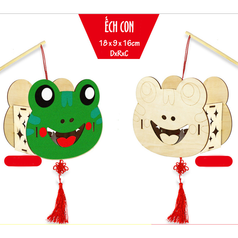 - Số lượng mảnh gỗ: 6 mảnh gỗ để ráp thành đèn lồng, dây tua rua, tay cầm và đèn led nến cho bé